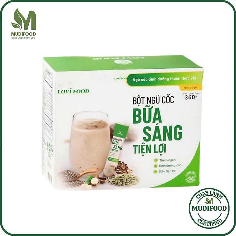 Bột Ngũ Cốc Lovifood Bữa Sáng Tiện Lợi (20 gói x 18g) - Thay Thế Bữa Ăn, Giảm Nguy Cơ Mắc Bệnh Tiểu Đường, Chống Oxy Hóa, Tốt Cho Tim Mạch, Bổ Sung Nội Tiết Tố, Đẹp Da - Thơm Ngon, Dễ Uống - Người Tập Gym và Yoga, Ăn Kiêng, Ăn Chay, Tiểu Đường, Tim Mạch