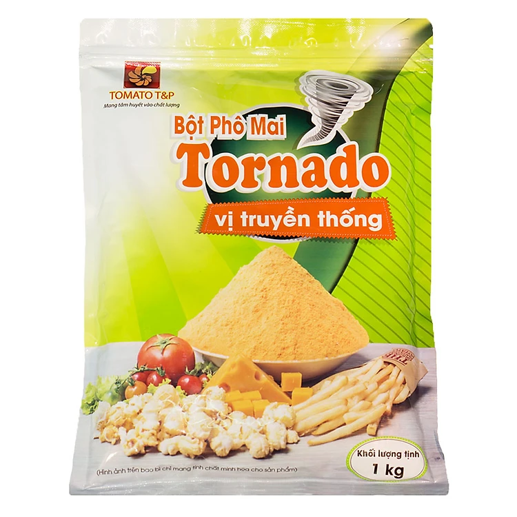 - Bột Phô Mai Tornado Vị Truyền Thống (100g / Gói) được sản xuất tại Việt Nam theo nguyên liệu và công nghệ Hàn Quốc, đảm bảo an toàn vệ sinh thực phẩm.