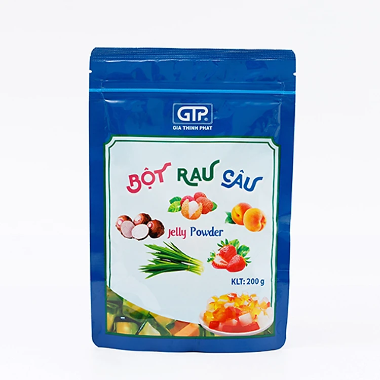 Bột thạch Jelly (Bột rau câu) GTP được sản xuất theo công thức đặc biệt cho thành phẩm có độ giòn, ngọt thanh và độ dai vừa phải… rất thích hợp để làm các loại thạch hay chế biến trực tiếp thành thạch jelly cho cả nhà thường thức. Cùng với bề dày phát triển của mình, công ty đã nghiên cứu ra nhiều hương vị để bạn tha hồ lựa chọn: Original, Socola, khoai môn, dâu, lá dứa, cà phê, vải, đà Lựa chọn sản phẩm của Gia Thịnh Phát nói chung và bột thạch Jelly nói riêng là lựa chọn an tâm cho sức khỏe của cả nhà. Bởi sản phẩm được trực tiếp sản xuất dưới dây chuyền công nghệ hiện đại đạt chuẩn ISO 9001-2008 & HACCP. Kết hợp với nguồn nguyên liệu sạch trong nước, đảm bảo các chứng nhận vệ sinh ATTP cho người dùng.