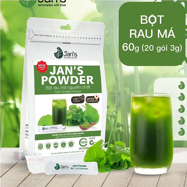 Bột Rau Má Nguyên Chất Sấy Lạnh Jan's Túi 60gr - Giúp Mát Gan, Thanh Lọc Cơ Thể, Hỗ Trợ Giảm Cân Giảm Mụn, Làm Đẹp Da