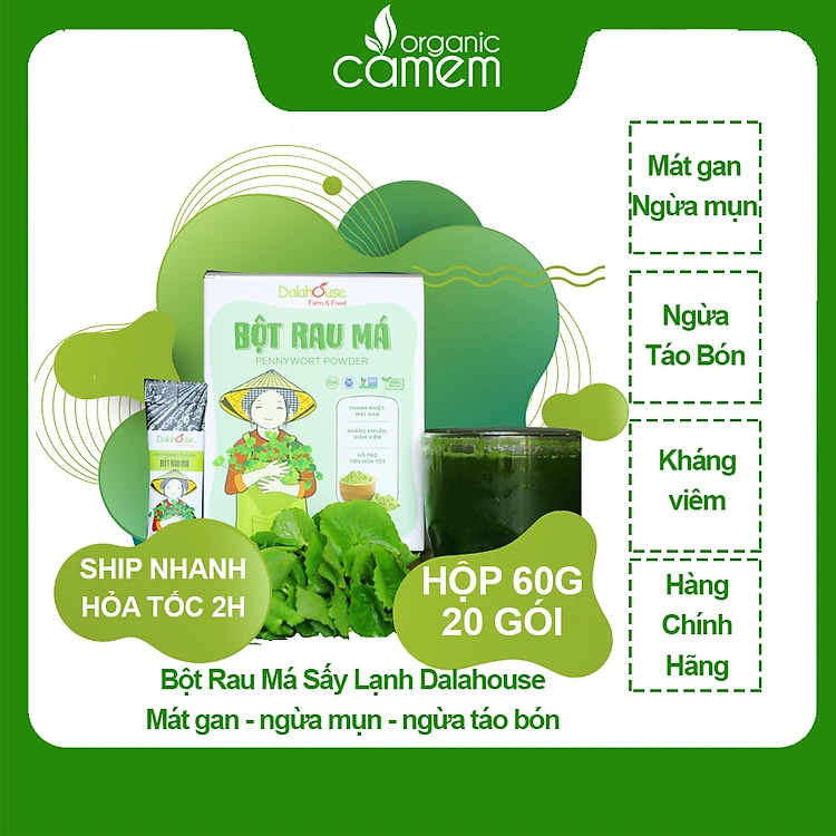 Bột rau má sấy lạnh dalahouse, hỗ trợ thanh nhiệt - mát gan- giảm mụn hiệu quả. Mỗi ngày 1 ly rau má chia tay táo bón