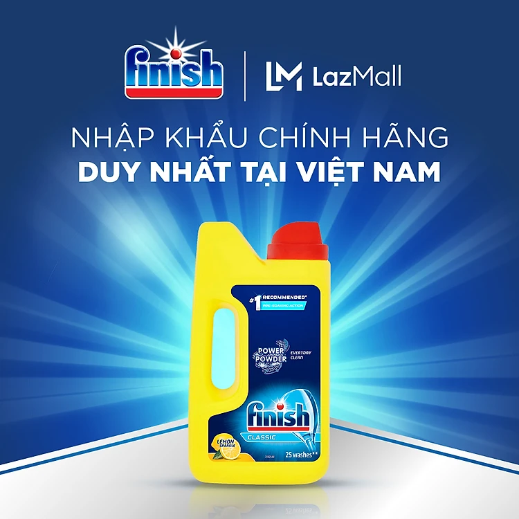 Bột Rửa Chén Bát Hương Chanh Finish Classic Power Powder Lemon Sparkle chai 1 kg