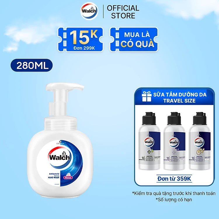 Bọt rửa tay kháng khuẩn Walch dưỡng da tay mềm mịn 280ml