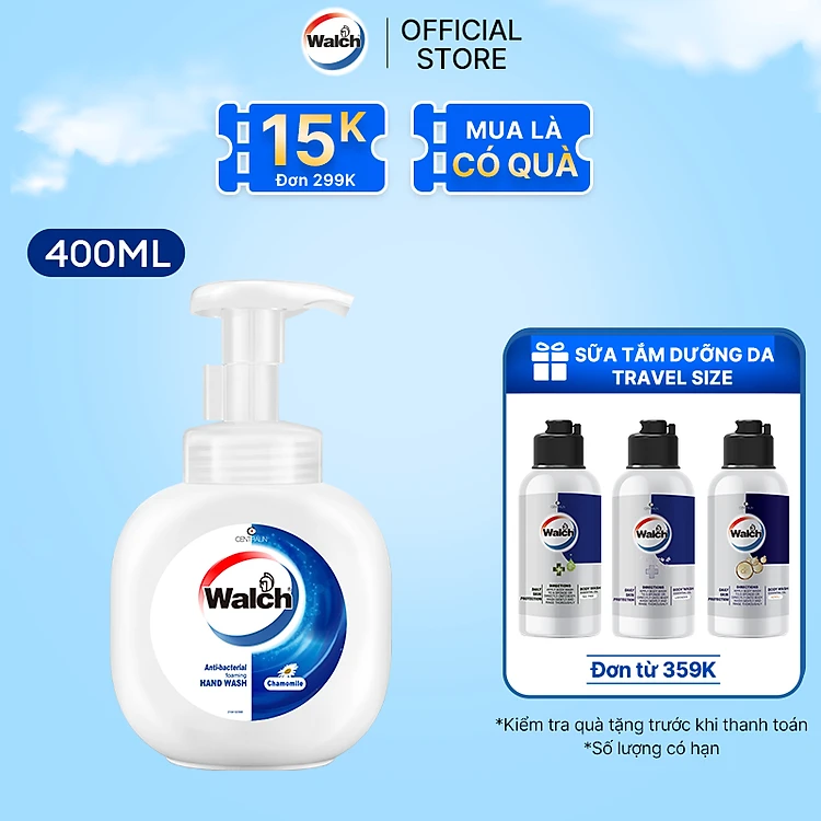 Bọt rửa tay kháng khuẩn Walch dưỡng da tay mềm mịn 400ml