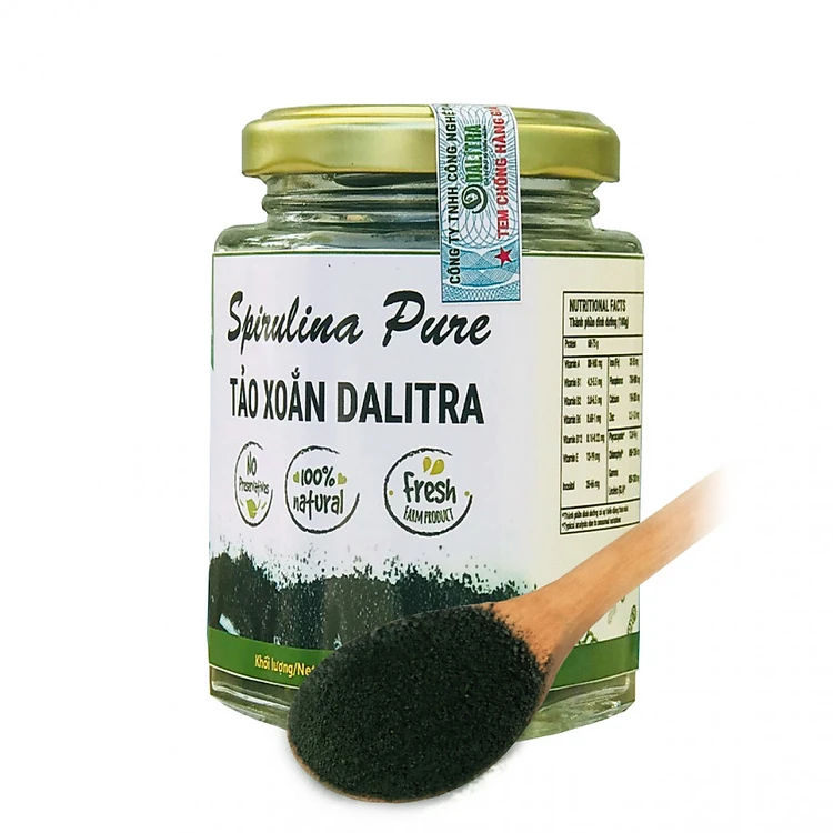 - Tảo Spirulina của Dalitra không cholesterol, không chất béo chuyển hóa, không chứa gluten, không đường và không chứa chất phụ gia, không chất bảo quản. *