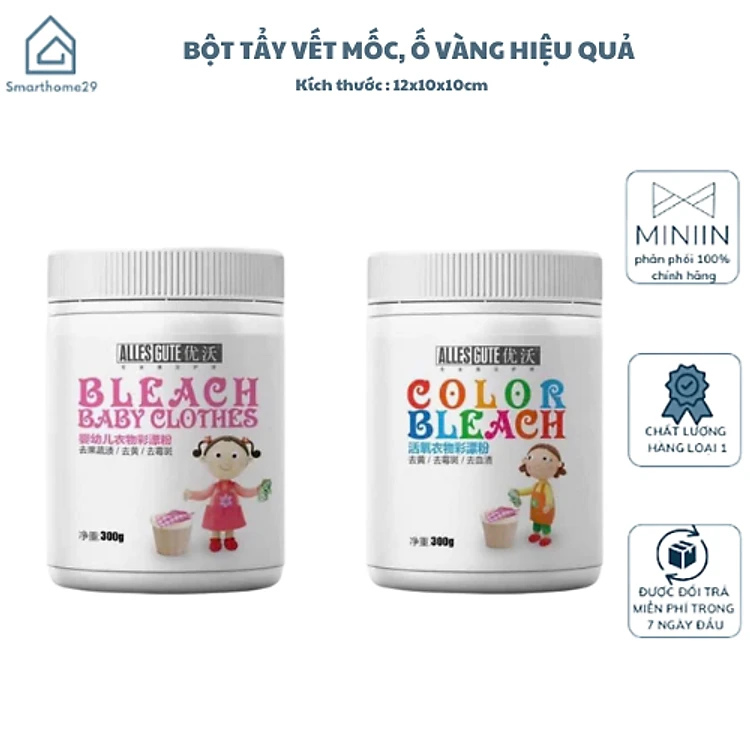 Bột Tẩy Vết Mốc, Ố Vàng Không Bay Màu - Tẩy Trắng Quần Áo Hiệu Quả, An Toàn Cho Bé - HÀNG CHÍNH HÃNG MINIIN