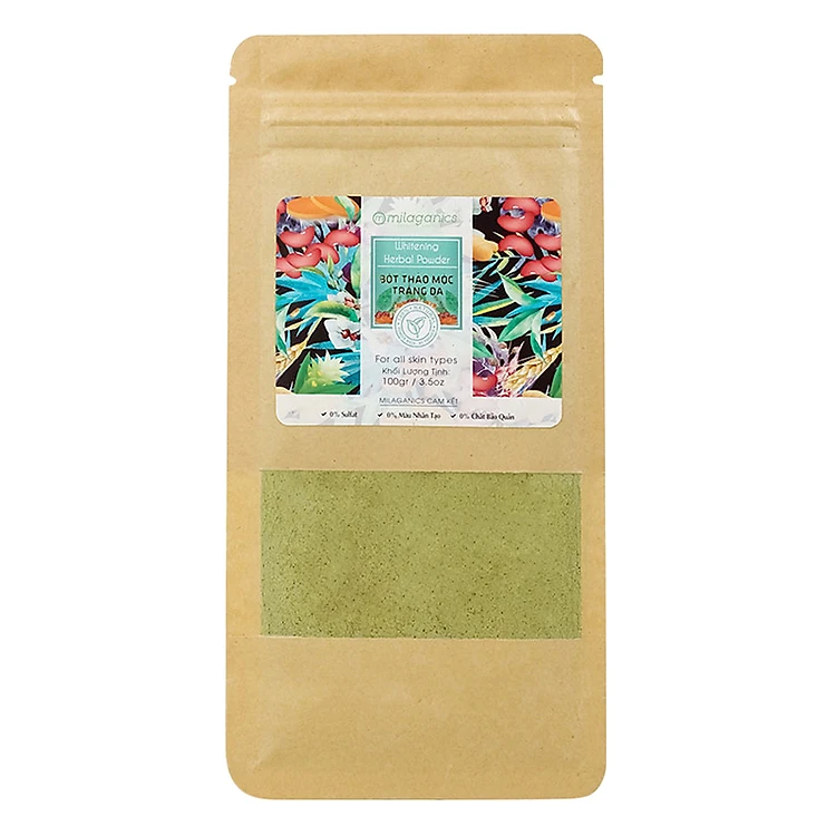 - Bột Thảo Mộc Trắng Da Milaganics 100g với thành phần gồm: Bột yến mạch, bột nghệ, bột đậu đỏ, bột đậu xanh, tinh bột khoai tây sẽ mang đến cho bạn làn da tươi sáng và mịn màng hơn bao giờ hết.