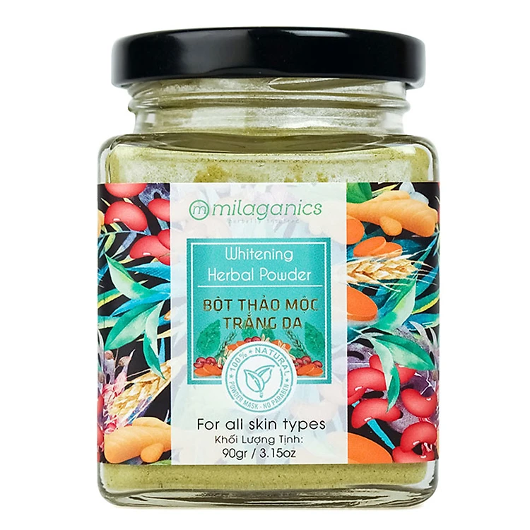 - Bột Thảo Mộc Trắng Da Milaganics Hũ 90g với thành phần gồm: Bột yến mạch, bột nghệ, bột đậu đỏ, bột đậu xanh, tinh bột khoai tây sẽ mang đến cho bạn làn da tươi sáng và mịn màng hơn bao giờ hết.