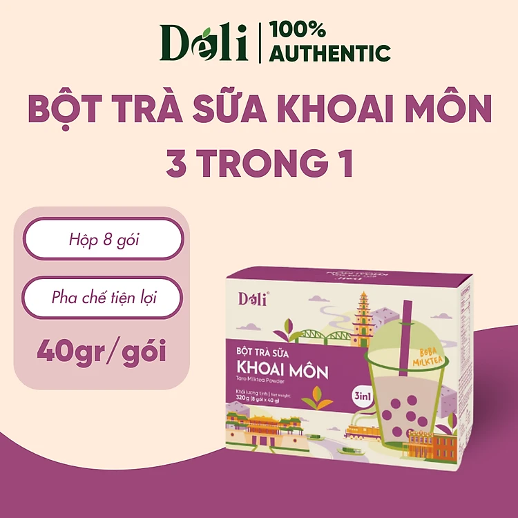 Bột trà sữa Khoai môn 3in1 Déli - Hộp 320gr (8 gói), pha chế trà sữa tiện lợi, nhanh chóng