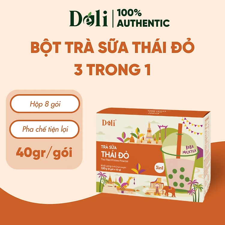 Bột trà sữa Thái đỏ 3in1 Déli - Hộp 320gr (8 gói), pha chế trà sữa tiện lợi, nhanh chóng