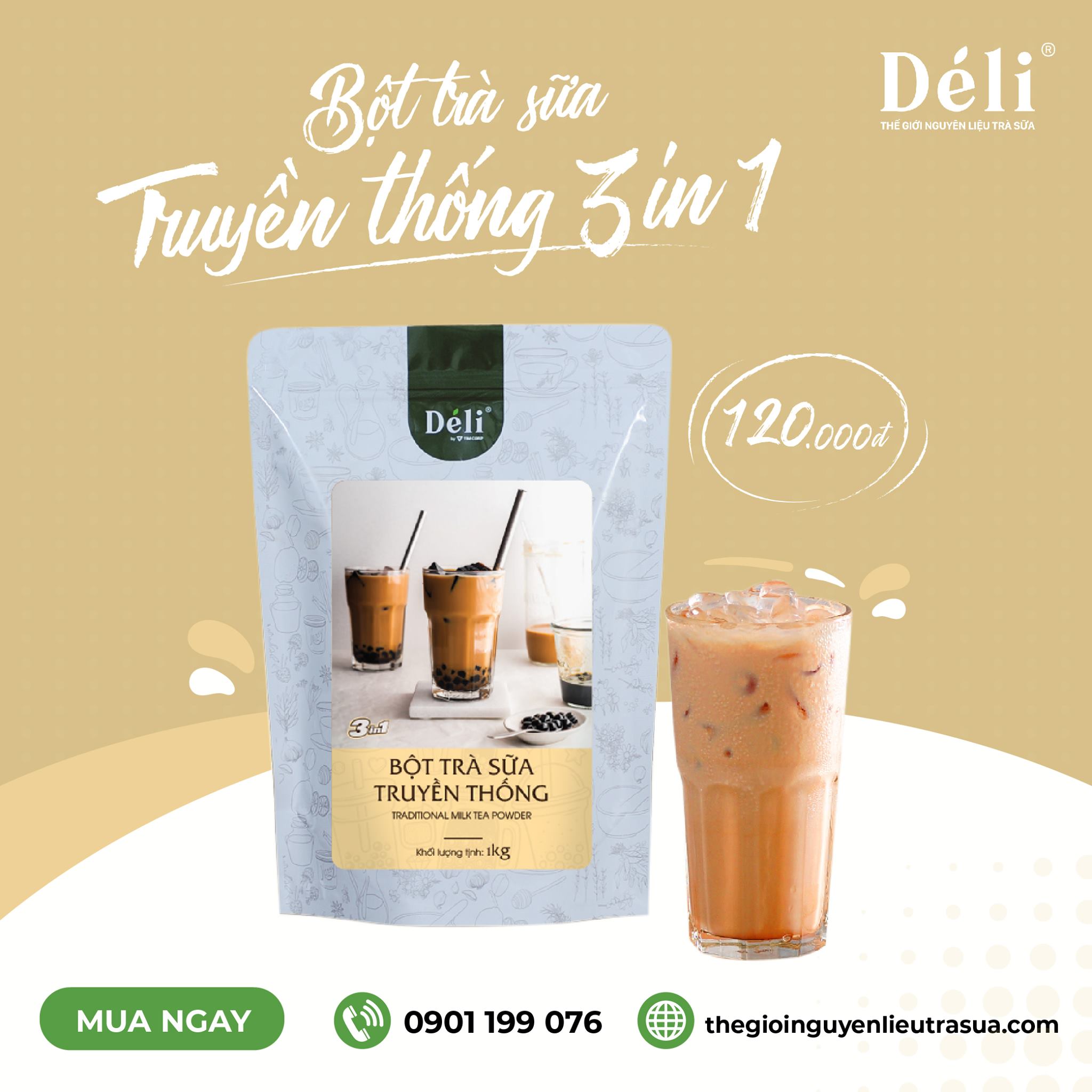 Bột trà sữa truyền thống 3in1 Déli - 1kg ( 25 ly ) pha chế trà sữa tiện lợi, nhanh chóng