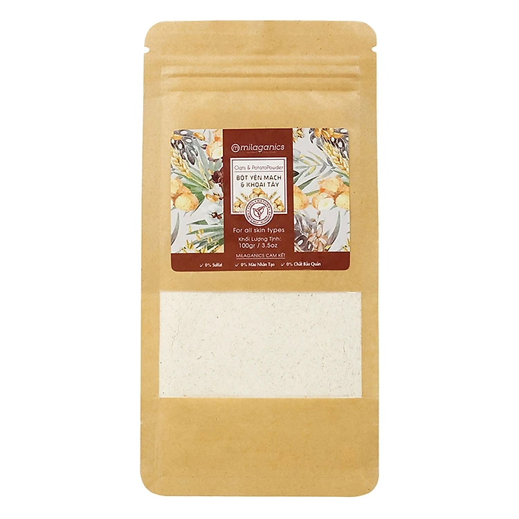 - Bột Yến Mạch Khoai Tây Dưỡng Trắng Da Milaganics 100g có khả năng chăm sóc da, đặc biệt là dưỡng trắng và phục hồi da.
