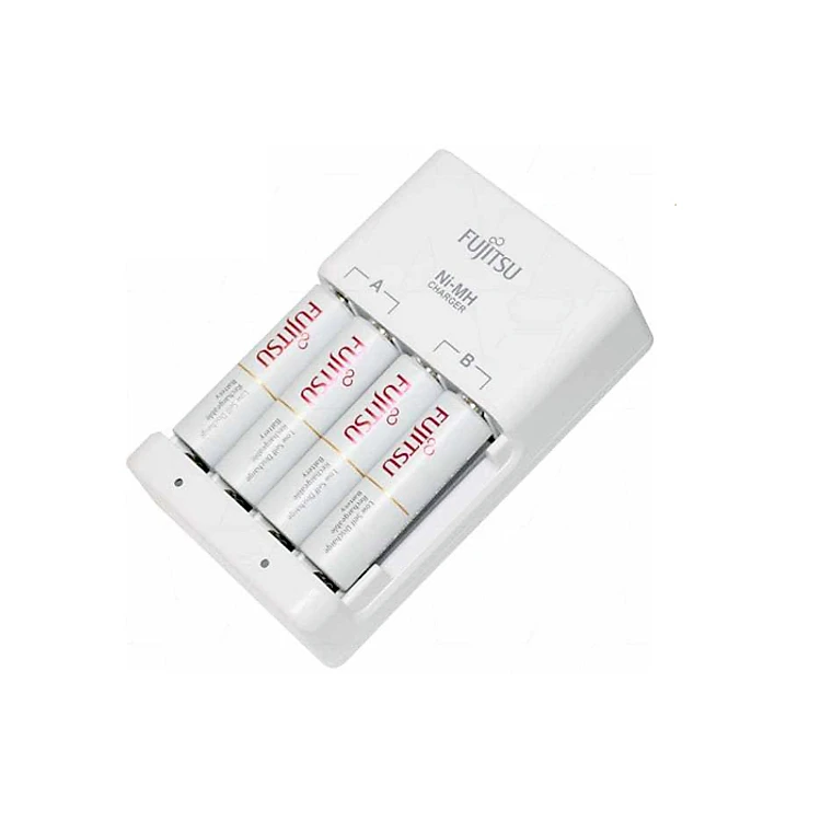 Box sạc kèm 4 pin AA Fujitsu HR-3UTC 1900mAh hàng nội địa box Nhật - made in JAPAN (trắng) Hàng Nhập Khẩu
