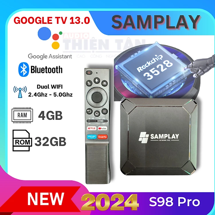 Box Tivi SAMPLAY - S98 PRO - Google TV - Ram 4G/32G - Tích Hợp Tìm Kiếm Bằng Giọng Nói - Hàng Nhập Khẩu