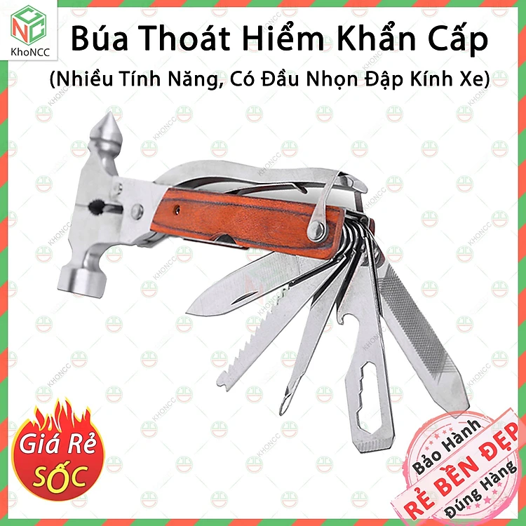 (An Tâm) Búa Cứu Hộ Đa Năng 7 Trong 1 KhoNCC Hàng Chính Hãng - Với Nhiều Tiện Ích Khác - Có Đầu Nhọn Đập Kính Xe Hơi Khi Thủy Kích, Cháy Nổ - KDHS-BUADN-580