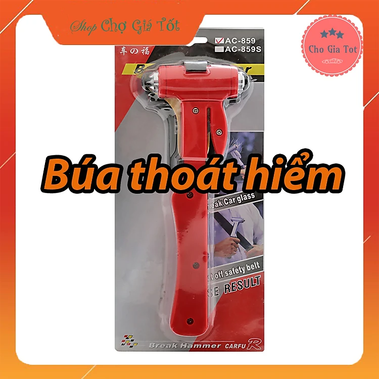 Búa phá kính thoát hiểm ô tô tàu xe loại to có đế gài AC-859