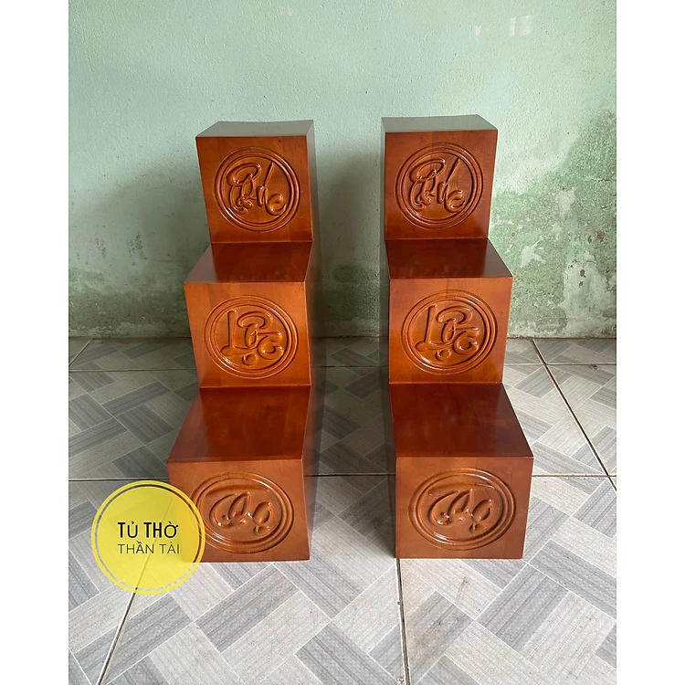 Bục tam cấp bàn thờ thần tài chạm khắc PHÚC LỘC THỌ