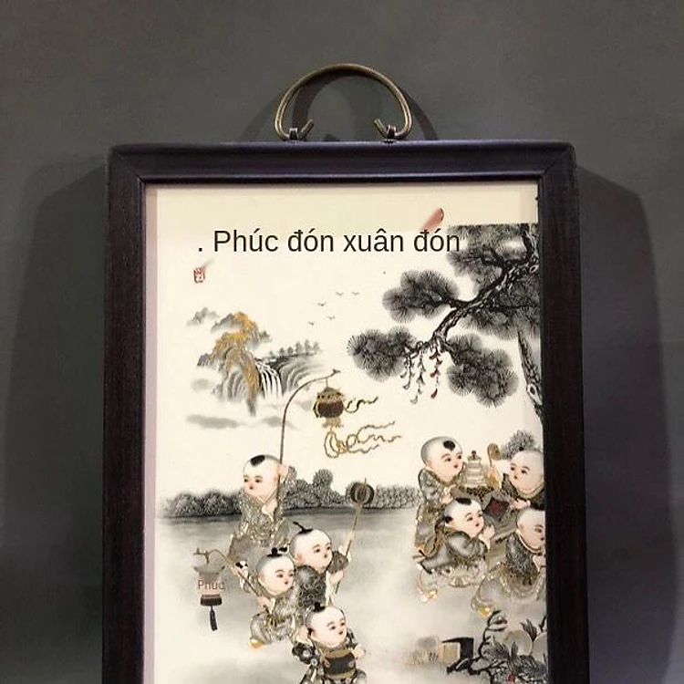 Bức tranh gốm sứ Jingdezhen Màn treo cổ Trung Quốc "Chào mừng đến với lễ hội mùa xuân" đĩa sơn trang trí phòng khách