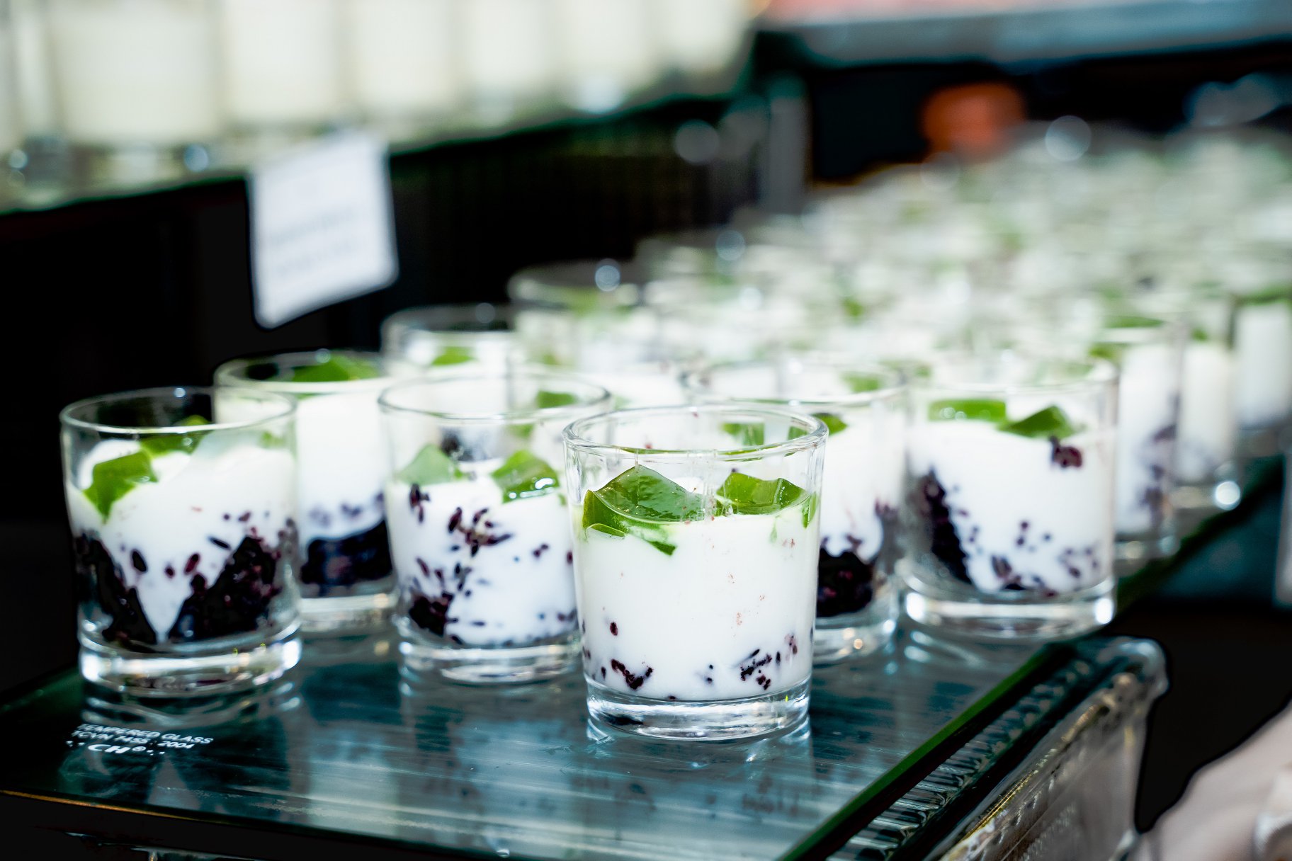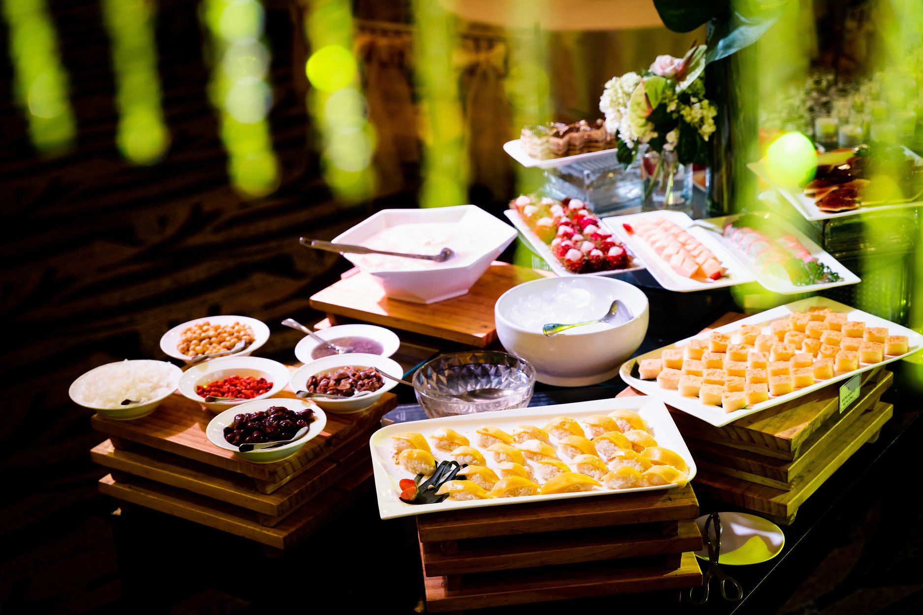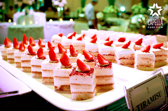 Kết thúc bữa tiệc thật tròn vị với nhiều món tráng miệng phong phú và hấp dẫn. Thực đơn các món tráng miệng là sự pha trộn giữa các món ẩm thực truyền thống và hiện đại mang đến hương vị thơm ngon, mới lạ. Những món ăn vặt quen thuộc của người Việt cũng có mặt trên bàn tiệc buffet lần này như : Rau câu flan phô mai, bánh chuối, bánh khoai mì, chè hạt sen Đài Loan, chè khúc bạch hoa đậu biếc… Bên cạnh đó là những món ăn mới lạ và hấp dẫn như: bánh Mousse trà xanh, mousse xoài nhân mứt mơ, mousse trái cây nhiệt đới, bông lan chocolate phủ kem bơ,