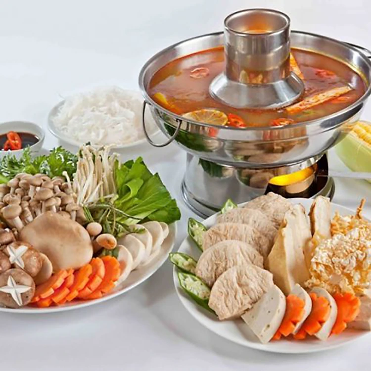Thực đơn buffet có rất nhiều món ngon cho bạn lựa chọn để thưởng thức như: Gỏi ngó sen chay, Đậu hủ ky cuộn phô mai, Cơm trái thơm, Cơm lá sen chay, Súp ngũ sắc chay, Mì ý phô mai sốt cà, Lẩu chay thập cẩm, Lẩu mắm chay, Bánh canh cua chay, Bánh xèo chay, Mì xào giò Bên cạnh đó, các loại rau củ như: rau luộc, hành tây, khoai lang, nấm, bắp, cà tím, cà được chế biến theo nhiều cách mới lạ khác nhau cũng để lại ấn tượng sâu sắc trong lòng thực khách.