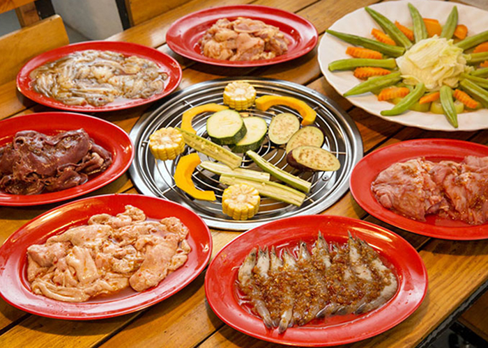 Bên cạnh những món nướng tại bàn, bạn còn có thể thưởng thức đan xen những món khai vị, món ăn nhẹ và món nóng được phục vụ tại một quầy riêng biệt, cho bữa ăn thêm đa dạng hương vị, gồm có các món: Súp gà, mỳ xào rau củ, trứng cút chiên, cari gà, bò kho, bắp xào, nghêu hấp thái, ốc lác xào tỏi, khoai tây chiên, đậu hủ chiên mắm me, bánh hỏi mỡ hành, gà chiên nước mắm, mỳ ý sốt thịt bằm, cơm cuộn, gỏi cuốn,