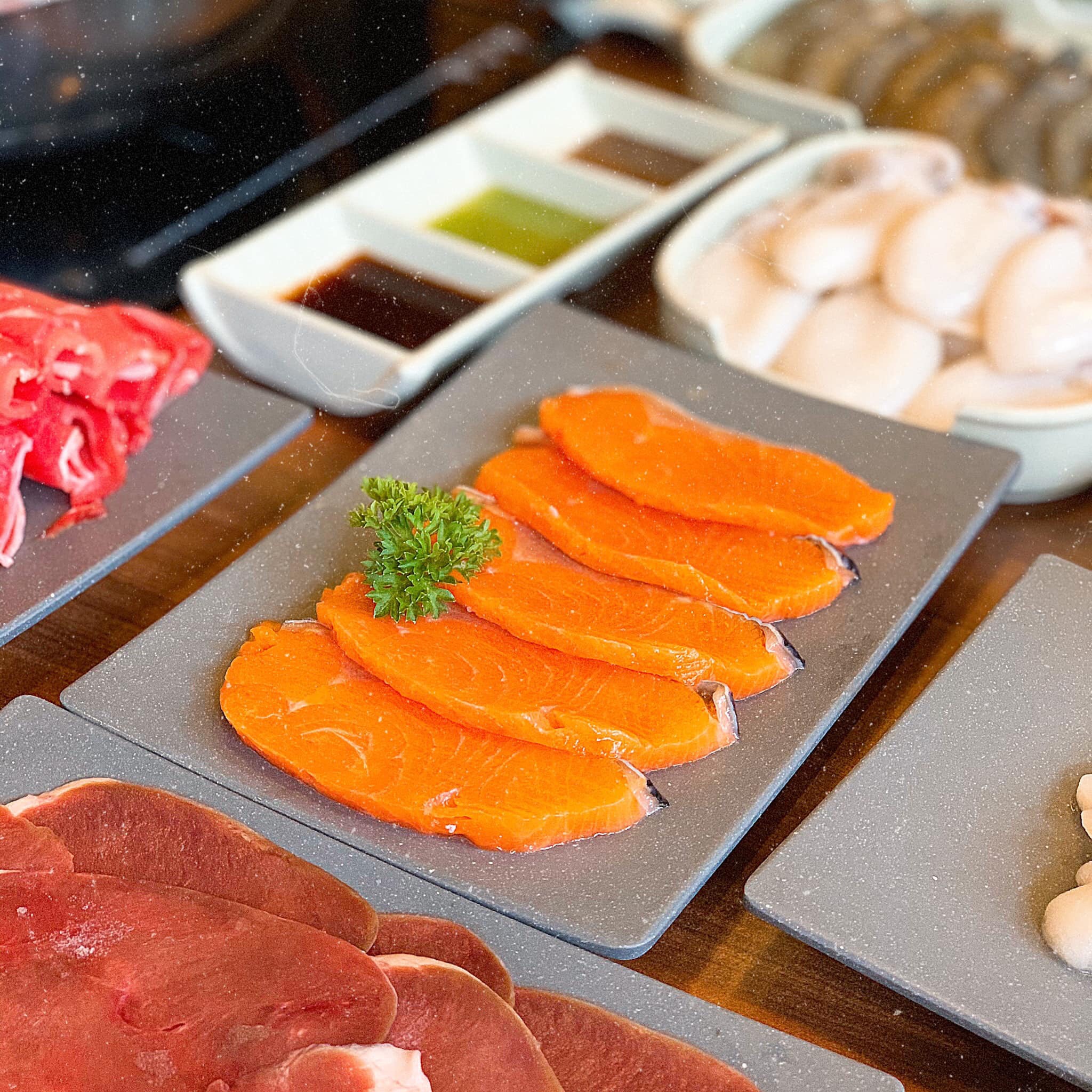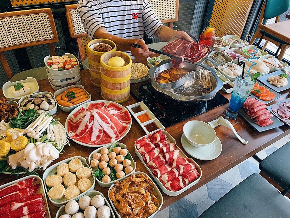 Món nhúng hải sản, bò Mỹ, dimsum, và các loại thịt thượng hạng