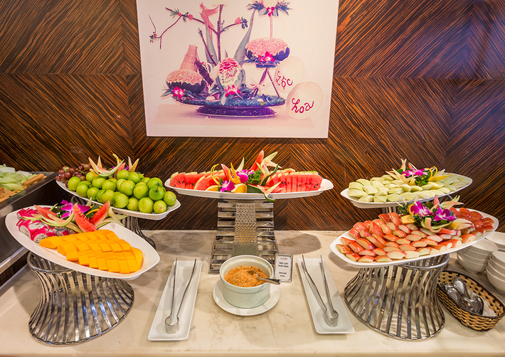 Sau khi đã no nê với bữa tiệc buffet tối tại Nhà hàng Palace, bạn đừng vội rời đi, hãy thảnh thơi ngồi lại để nhấm nháp thêm các loại trái cây mát lạnh cùng vị ngọt từ chè khoai môn, chè táo sọn, đậu trắng hầm, đậu xanh tán, hay các loại bánh ngọt đầy "khiêu khích". Tất cả sẽ góp phần làm cho bữa tiệc của bạn thêm đầy đủ và đọng lại dư vị khó quên.