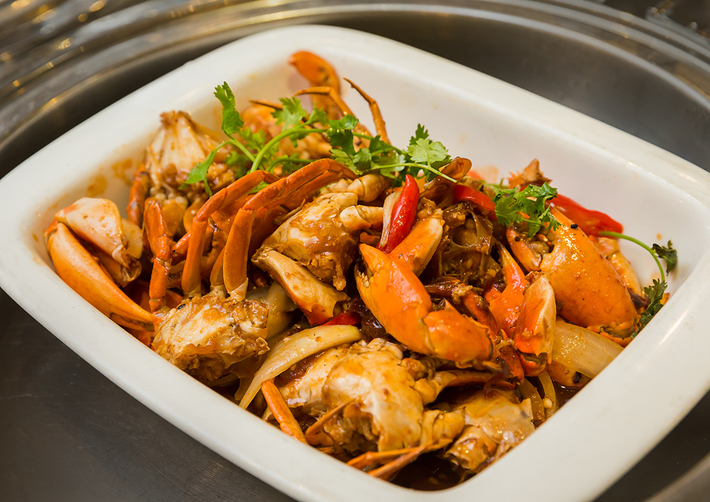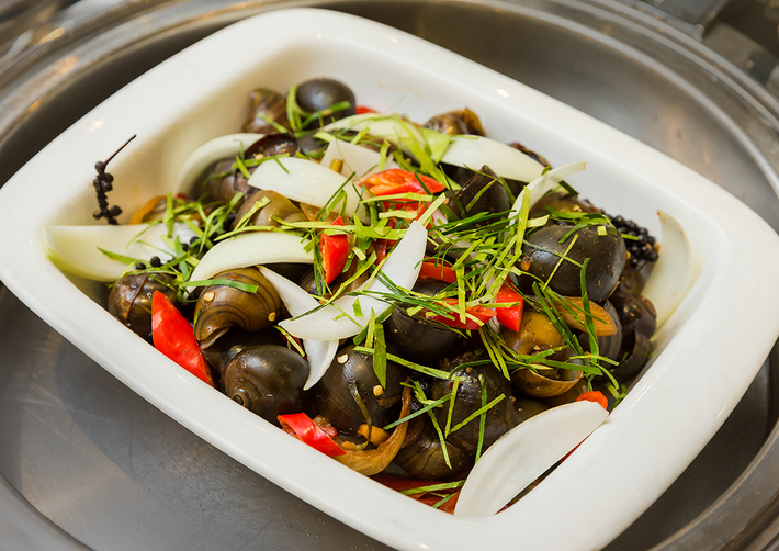 Tại quầy món chính, bạn sẽ hài lòng với thực đơn đa dạng. Từ những món ăn quen thuộc nhưng qua bàn tay tài hoa của các đầu bếp tại đây cũng trở nên đặc biệt và mang hương vị riêng rất khó diễn tả nếu bạn không tự mình cảm nhận. Hãy nếm thử bò mỡ chài, bò nấu tiêu, cua biển rang me, cua Paci, nghêu hấp, ốc len xào dừa, ốc bươu sốt tiêu, cá tẩm bột chiên, cá hấp Hong Kong, để thấy được sự phong phú ấy bạn nhé!