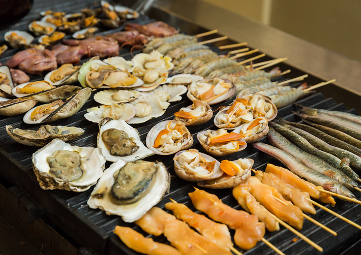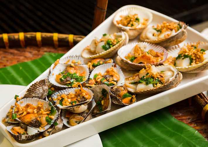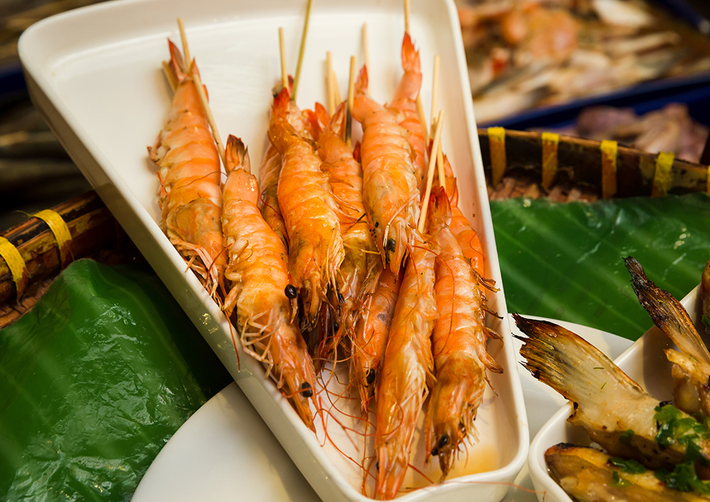 Đặc biệt, quầy nướng với rất nhiều hải sản cùng thịt sẽ khiến bạn không thể làm ngơ trước mùi thơm nức mũi cứ "khiêu khích" vị giác. Nào là sò vẹo, sò lá, sò dương, hàu; nào là tôm thẻ, chim cút, thịt gà. Thậm chí, khi chưa thưởng thức, màu nâu óng ánh của mỗi món nướng đã chín hay chút bóng bẩy từ mỡ hành, hành phi giòn rụm cũng đủ sức thôi thúc bạn phải gắp ngay chúng vào dĩa của mình. Mặn, ngọt, cay hài hòa, khiến thực khách cứ phải gật gù rồi chìm đắm trong vị ngon từ mỗi món nướng.