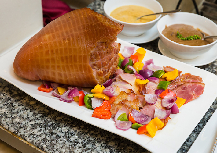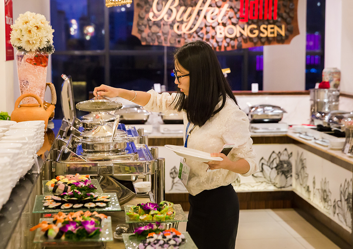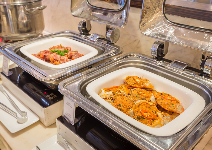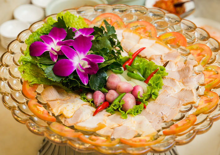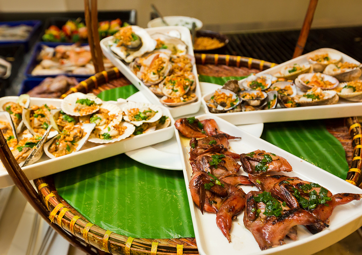 Buffet càng sang trọng, thu hút thực khách hơn khi có sự góp mặt của món giò heo muối, bò Mỹ nướng hay heo quay, vịt nướng, gà luộc. Và đừng quên "chừa bụng" để thưởng thức lẩu tôm càng hảo hạng hay lẩu thập cẩm dùng kèm gân nai, vây cá hồi, cá viên thì là, Nước dùng nóng hổi, dậy mùi thơm ăn cùng rau và bún sẽ làm cho tâm hồn mỗi người trở nên vui vẻ lạ kì.