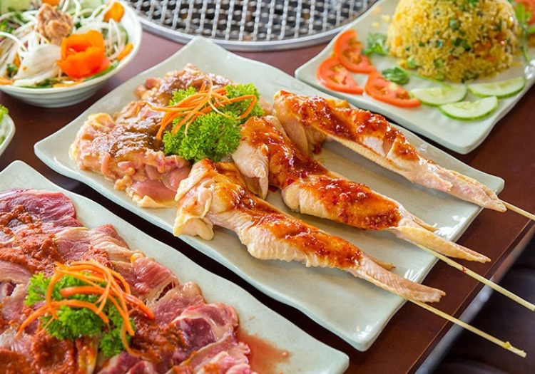 Thực đơn món nướng tại nhà hàng còn mang đến cho thực khách rất nhiều món nướng hấp dẫn khác từ các loại bò Mỹ, gà, sườn heo tươi ngon.