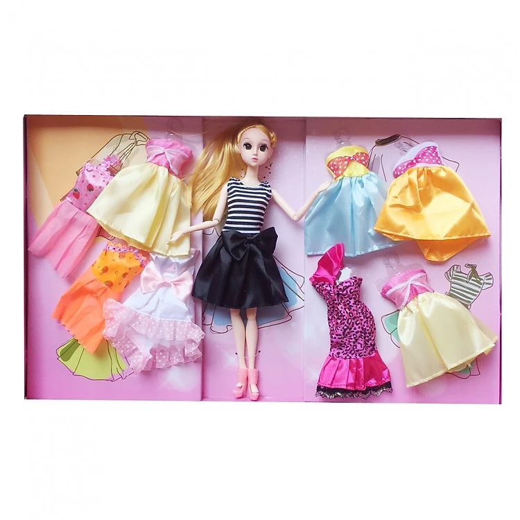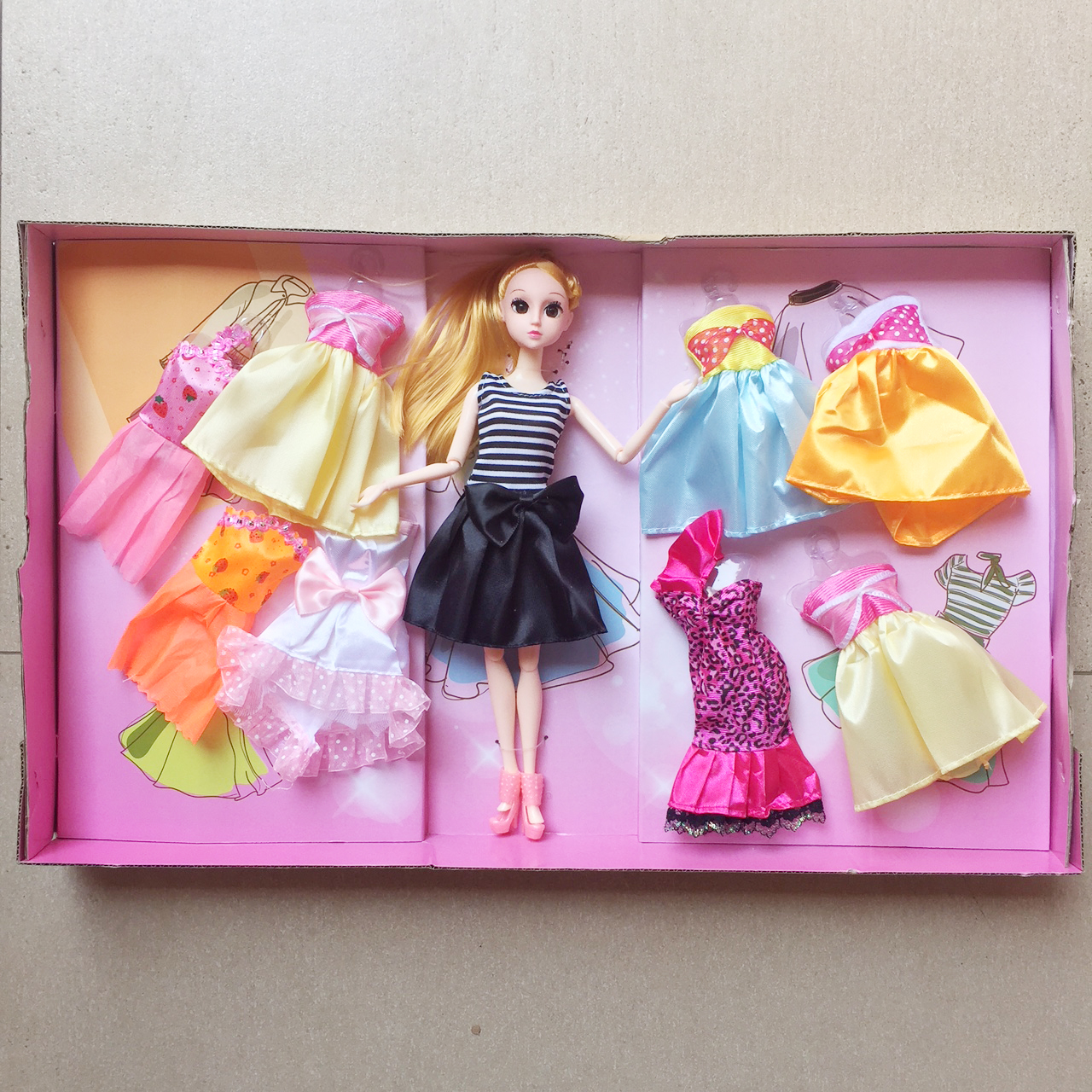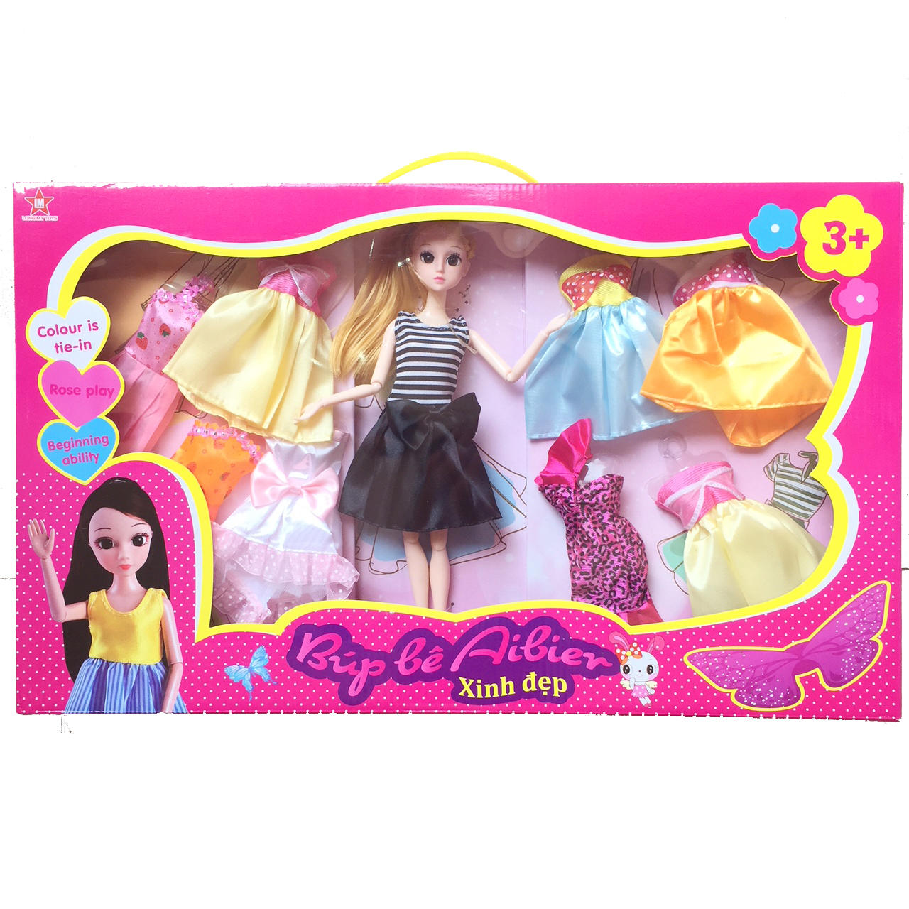 Sản phẩm gồm có 1 búp bê có khớp cao 30cm và 8 bộ váy ( các mẫu váy có thể thay đổi mẫu theo từng sản phẩm, nên sẽ được giao ngẫu nhiên)