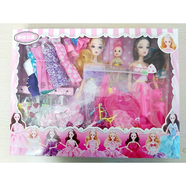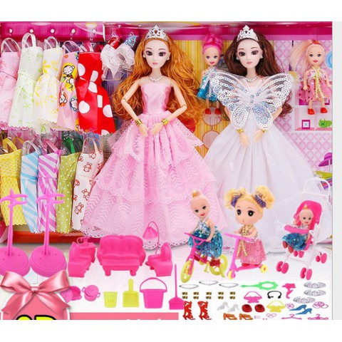 Búp bê được tặng kèm đủ phụ kiện : vương miện; vòng cổ; giầy; giá đỡ , váy,