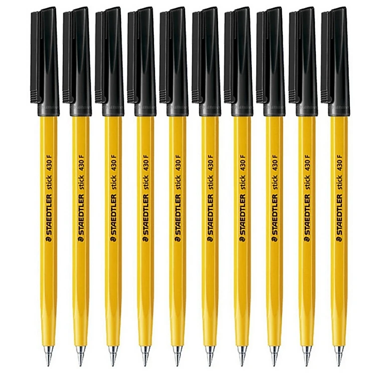 • Bút bi đen 10 cây Staedter: Một sản phẩm dành cho giới văn phòng. Bút có thiết kế hiện đại, thân nhỏ và thon dài, dễ cầm nắm khi viết. Thân bút làm từ nhựa cứng.