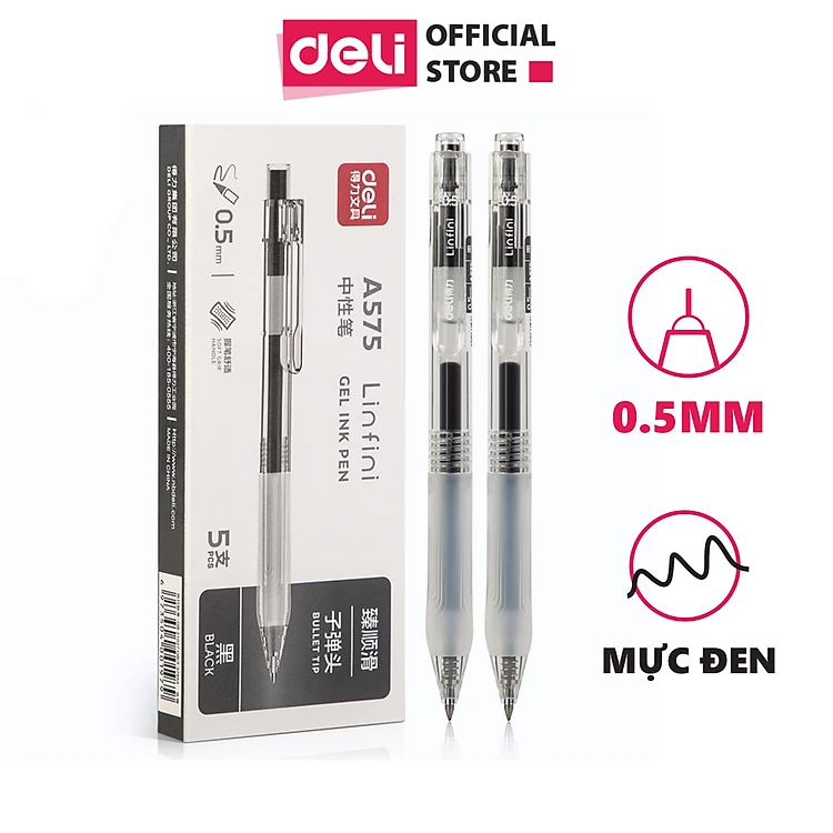 Bút Bi Nước Mực Gel Bấm Ngòi 0.5mm Deli - Có Ngòi Thay Thế Viết Trơn Đều Phù Hợp Ghi Chép Văn Phòng Học Sinh Sổ Tay - A575