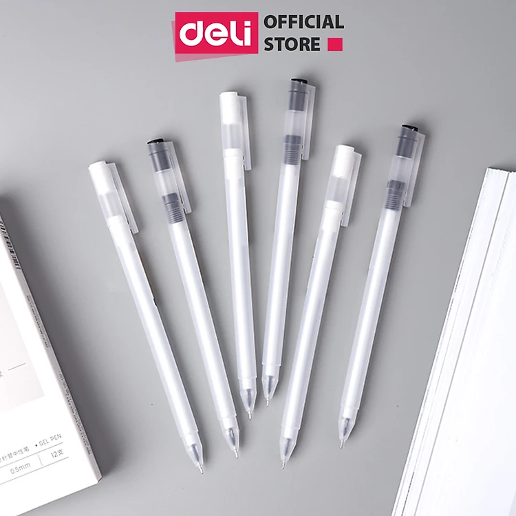 Bút Bi Nước Mực Gel Ngòi 0.5mm Nắp Đậy Deli - Viết Trơn Đều Phù Hợp Ghi Chép Văn Phòng Học Sinh Sổ Tay - A117
