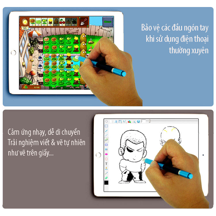 Bút cảm ứng đa năng 2 trong 1 với một đầu là cảm ứng điện dung; đầu còn lại là bút bị giúp cho việc ghi chép dễ dàng hơn