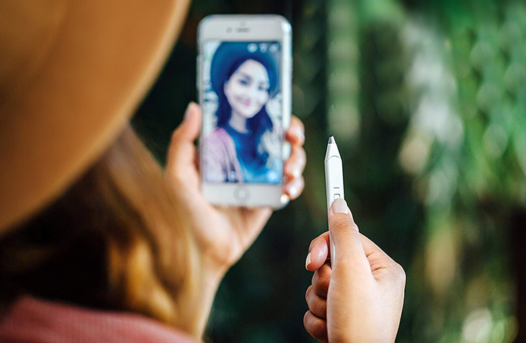 Chiếc bút kết nối với điện thoại của bạn thông qua kết nối Bluetooth và bạn có thể tận dụng thiết bị để điều khiển chụp ảnh từ xa. Chỉ cần bấm nút ở giữa là bạn đã có thể chụp hình nhóm từ xa hoặc chụp selfie nhanh chóng.