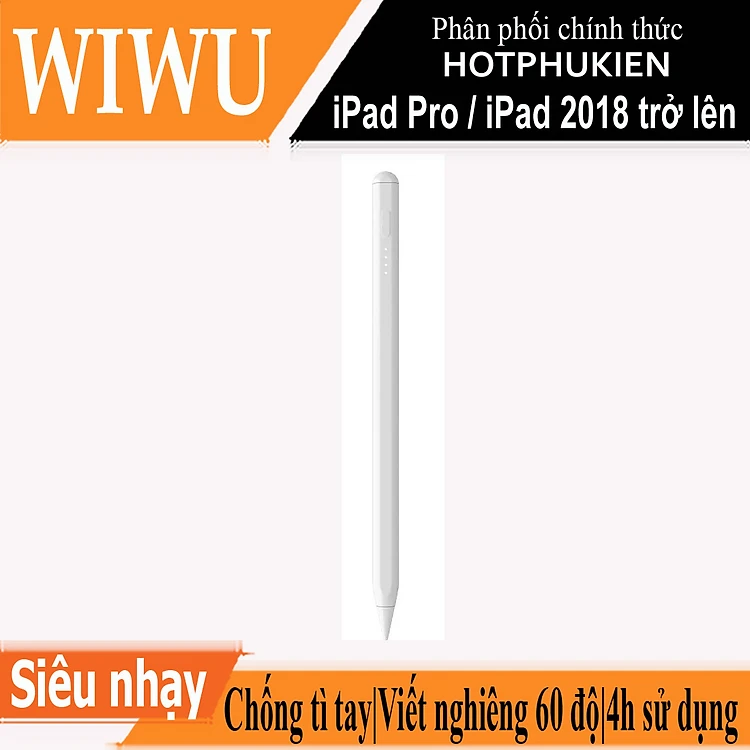 Bút cảm ứng stylus thông minh đầu bút siêu mịn mượt hiệu WIWU Pencil Pro Max cho iPad Pro và các dòng iPad / iPad Mini từ đời 2018 trở lên hỗ trợ viết vẽ nghiêng hơn 60 độ, chống tì tay, trang bị nam châm hít vào iPad - hàng nhập khẩu