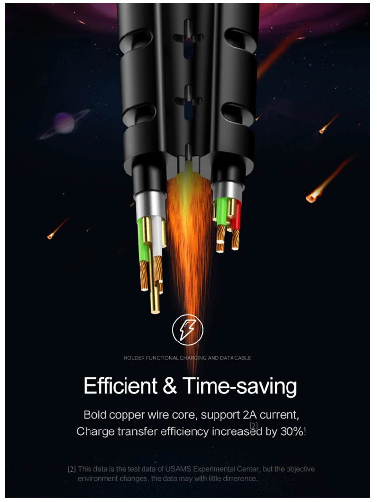 Cáp sạc USAMS được thiết kế với tiết diện dây lớn làm giảm trở kháng và đảm bảo tốc độ sạc tối đa mà củ sạc có thể cung cấp cho điện thoại. Bên cạnh đó dây dẫn được làm bằng chất liệu dẫn điện tốt, không sinh nhiều nhiệt trong quá trình sạc.