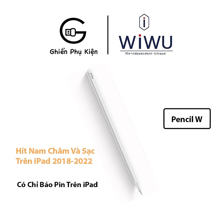 Bút Cảm Ứng Wiwu Pencil W Hít Nam Châm Và Sạc Có Chỉ Báo Pin Dành Cho iPad 8.3/10.9/11/12.9INCH - Hàng Chính Hãng