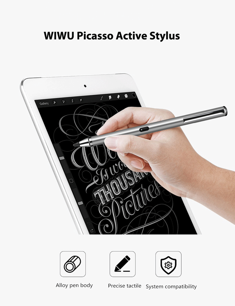 Bút cảm ứng WIWU Picasso Active Stylus - P666 cho phép bạn nhập văn bản viết tay để ghi chú, cũng như tạo các bản phác thảo và phác thảo trong các ứng dụng đồ họa. Bút stylus tương thích với bất kỳ màn hình cảm ứng nào của điện thoại thông minh hoặc máy tính bảng.