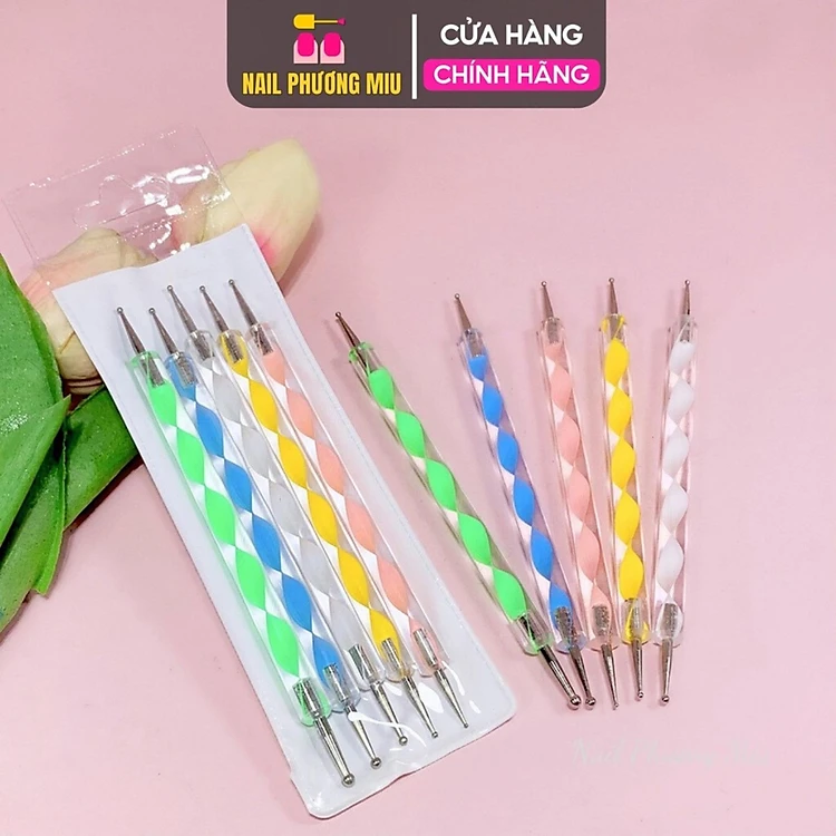 Bút Chấm Bi Nail Đủ Size 5 Cây Cán Nhựa Nhiều Màu - Bút Chấm Bi Vẽ Móng 2 Đầu Bắng Thép Không Gỉ Chuyên Dụng Làm Nail