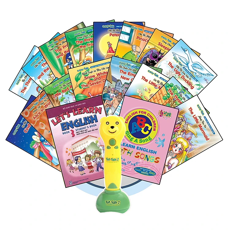 Đi kèm với bút chấm đọc Tot-Talk 2 là đa dạng bộ sách phù hợp với mọi lứa tuổi, hỗ trợ các bé học tiếng Anh trên ở trường theo sách giáo khoa và các sách tiếng Anh chuyên dùng.