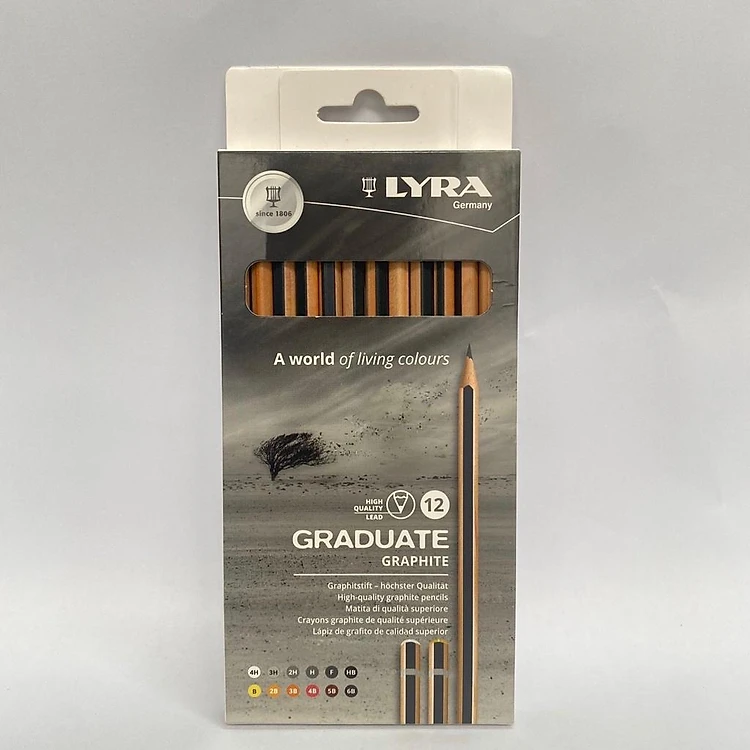 Bút chì cao cấp nhập khẩu Đức LYRA Graduate Graphite (Hộp 12 bút 4H, 3H, 2H, H, F, HB, B, 2B, 3B, 4B, 5B, 6B) 1171120
