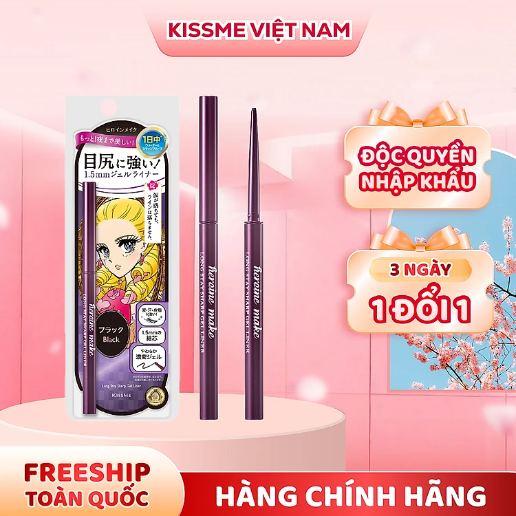 Bút Chì Gel Kẻ Mí Mắt Siêu Chống Trôi Dạng Xoay Màu Đen Kissme Heroine Make #01