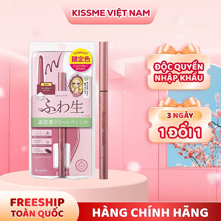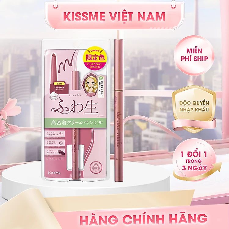 Bút Chì Kem Kẻ Mắt Chống Trôi Màu Xám Hồng Kissme Heroine Make