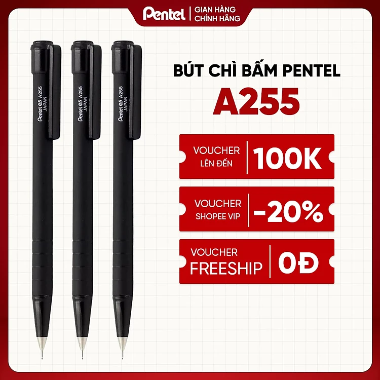 Bút chì kim bấm Pentel A255 ngòi 0.5mm chắc chắn bền đẹp nhỏ gọn tiện dụng