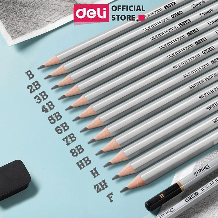 Bút Chì Phác Thảo Dmast Cao Cấp Chuyên Nghiệp Deli - Độ Cứng Từ 2H - 8B - Vẽ Tranh Mỹ Thuật Họa Chân Dung Độ Đậm Chuẩn