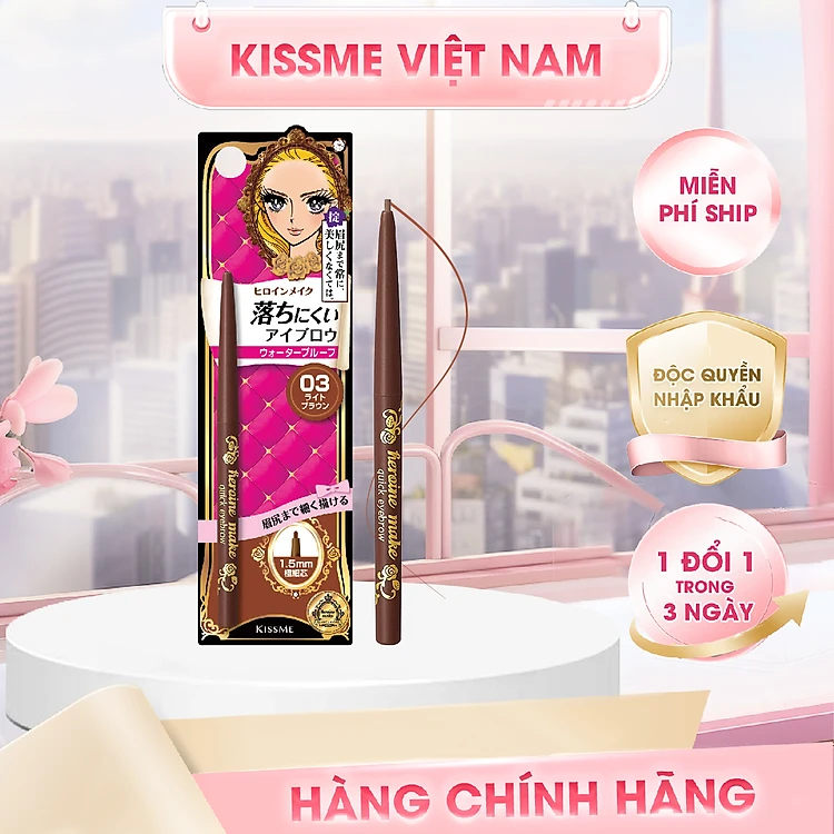 Bút Chì Sáp Kẻ Lông Mày Không Lem Trôi Lõi Siêu Mịn Màu Nâu Sáng Kissme Heroine Make Quick Eyeliner
